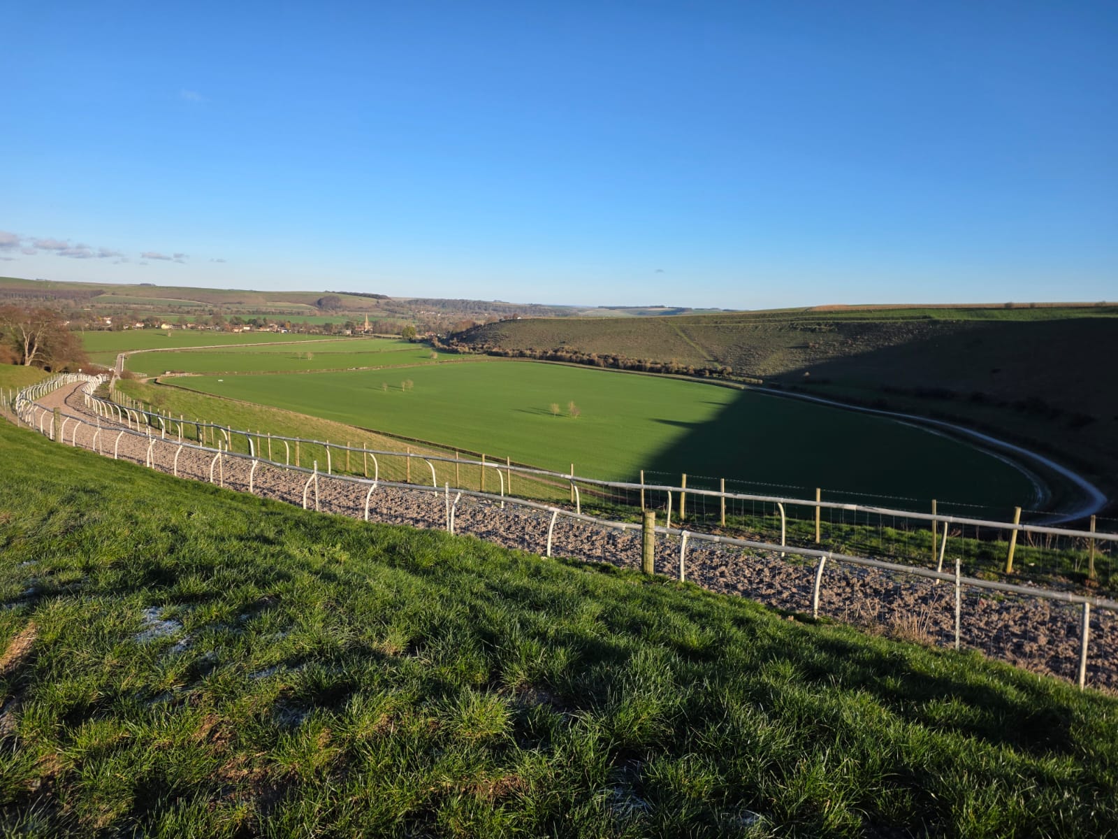 The 1 mile hill gallop is known as one of the very best in the south west. The first 4 furlongs are flat followed by a steep climb up the next 4 furlongs to give you the flexibility to work on speed or fitness. This gallop has successfully trained grade 1 winners and is a brilliant gallop to give your horse a thorough workout.